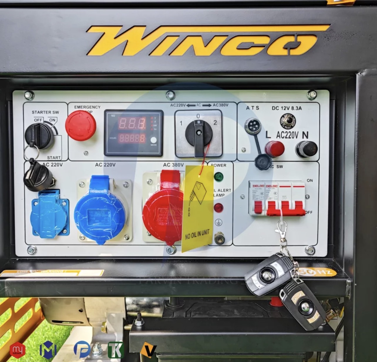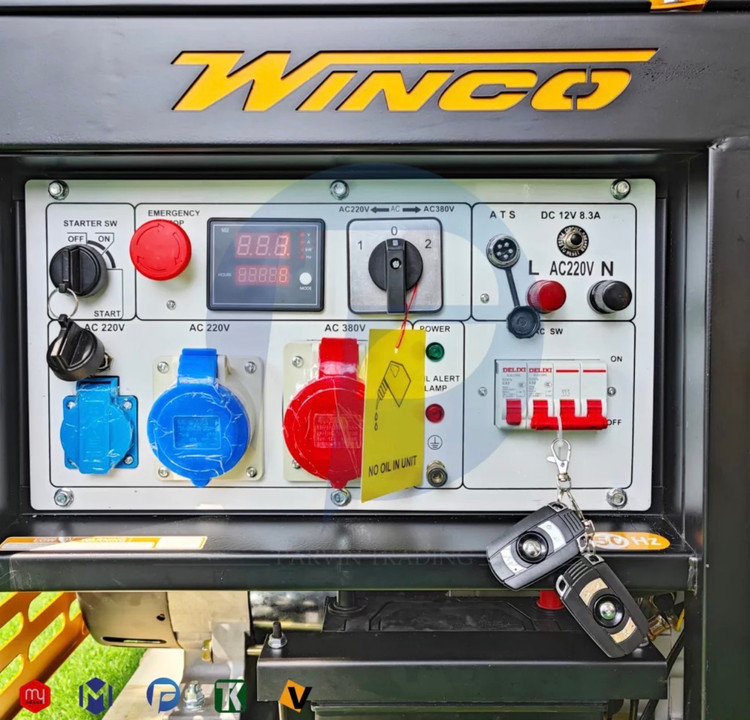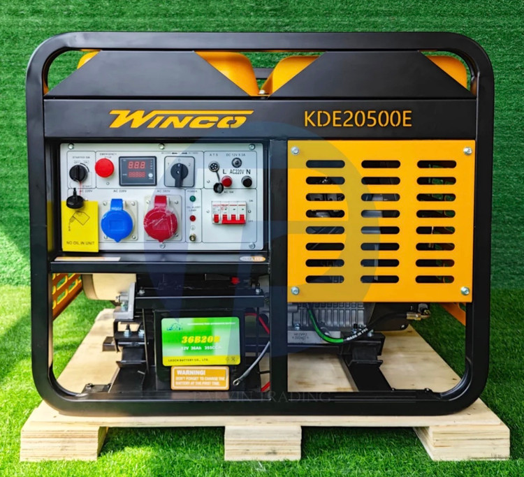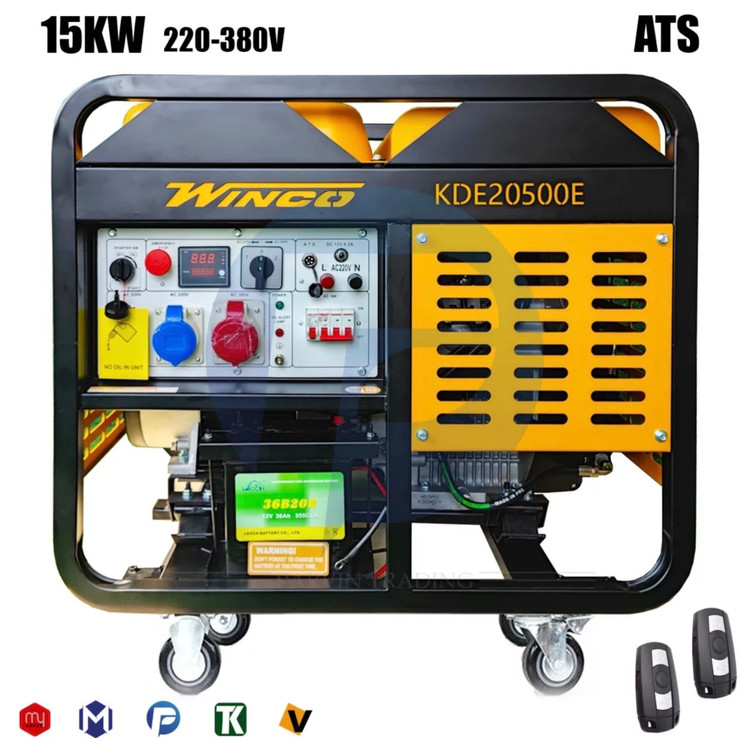 موتور برق گازوئیلی ۲۰ کاوا وینکو مدل KDE20500E ساخت کشور چین، با توان ۱۵ کیلووات و آمپر ۶۴ تکفاز و ۲۷ سه فاز. این دستگاه دارای ولتاژ ۲۲۰-۳۸ ولت و دور موتور ۰۰۰ دور در دقیقه است. مجهز به سیستم ATS برای انتقال خودکار برق.